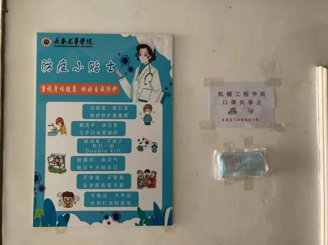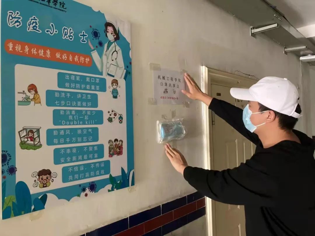 xcsports在各寝室楼层过道的墙壁上张贴了带有口罩共享点字样的纸张,并在下方贴心的贴上了一袋袋口罩。口罩共享点的设立,在保障同学们在寝室的安全与健康的同时,还起到了提醒与警示的作用,时刻督促同学们,严格遵守疫情防控相关规定,出门戴口罩,勤洗手,注意个人卫生。同学们也要时刻保持警惕,做好个人疫情防护工作,共同守卫公司与寝室卫生与安全。