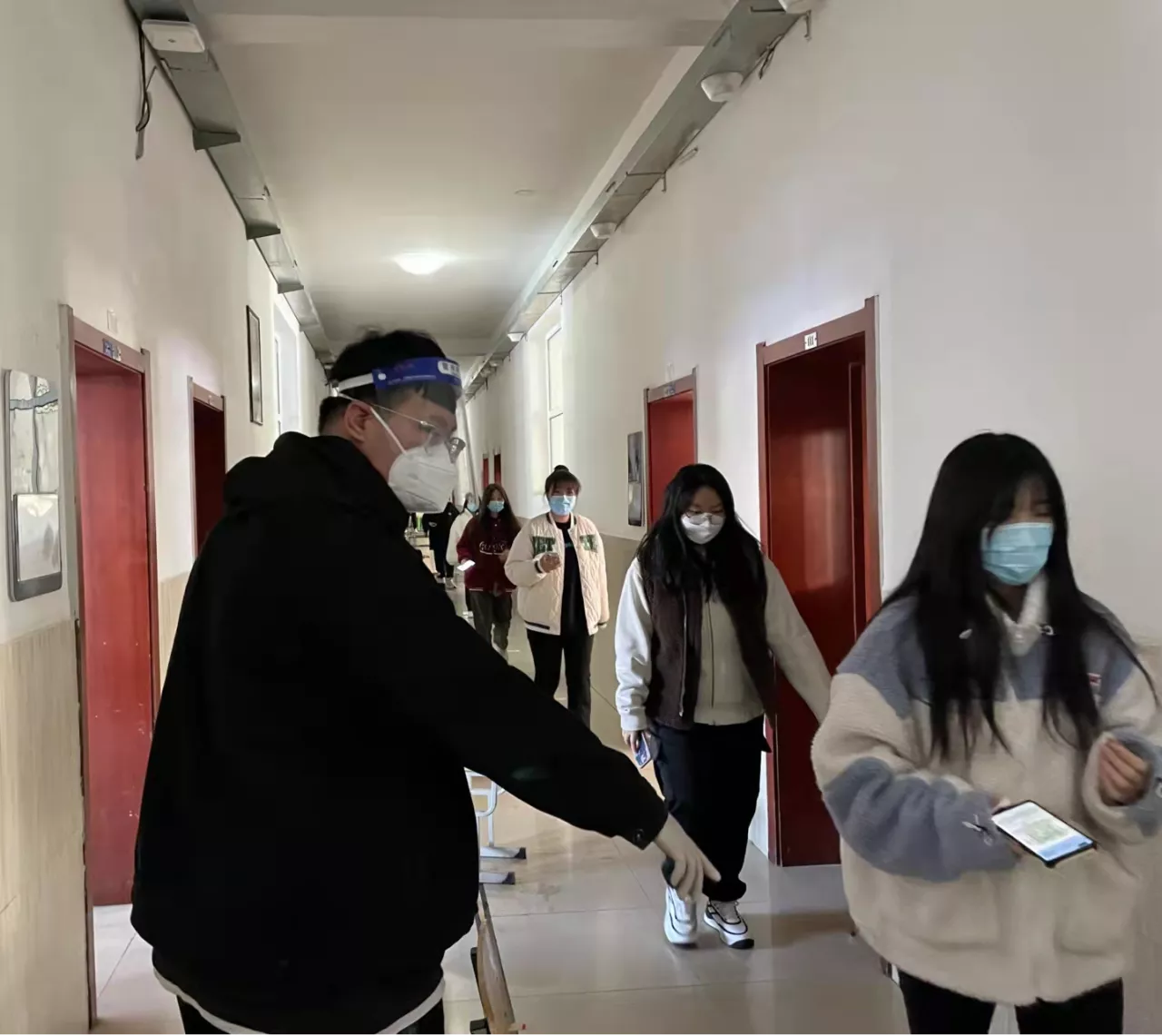 不辞辛苦,恪尽职守,杜冬雪同学主要负责维护核酸采集现场等候排队的秩序,并耐心提醒同学们佩戴好口罩和保持间距,积极配合登记人员的工作,使排队在安全的基础上井然有序,并且加快了核酸采集进程。
