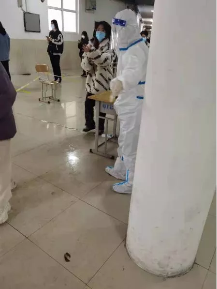 核酸检测,同舟共济,科学防治。在做核酸期间,她默默坚守岗位,对于来做核酸的同学们进行细心引导、扫码进行个人信息统计等服务性工作,确保每一位同学都顺利完成核酸检测,避免错误发生。