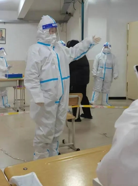 面对当前严峻复杂的疫情形势,做好自身安全防护就是做出了最大的努力。她说除了需要有参与疫情防控的员工志愿者,更要有每一名同学的积极配合,大家共同与时间赛跑、为生命护航,筑牢校园安全屏障。在做好自身安全防控的情况下,提醒同学们核酸检测完成后及时佩戴好口罩,为他们引路,劝导他们尽快离开采集现场,避免出现拥堵现象,避免同学们聚集,减少疫情暴露的风险,一次次的抬手引领,一句句洪亮的声音,这些都是她心中坚定信仰的体现。