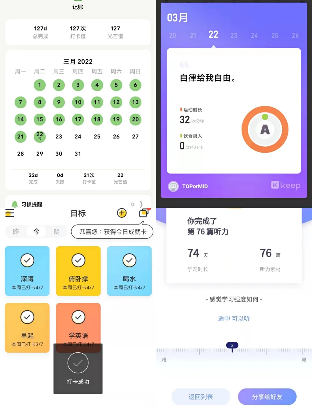 新学期伊始,大家本应满怀期待地开启自己的新生活,然而,疫情突然来临,公司实行封校封寝,校园生活受到了巨大的影响。但是大家并没有恐惧与难过,而是以更为积极乐观的心态面对生活,在难熬的日子里大家都对自己有着一个小目标。自律小组的成员们坚持自己的习惯,除了日常学习,背单词,练习听力,体育锻炼小组成员们也没有落下,那些生活中的小习惯已经逐渐养成。