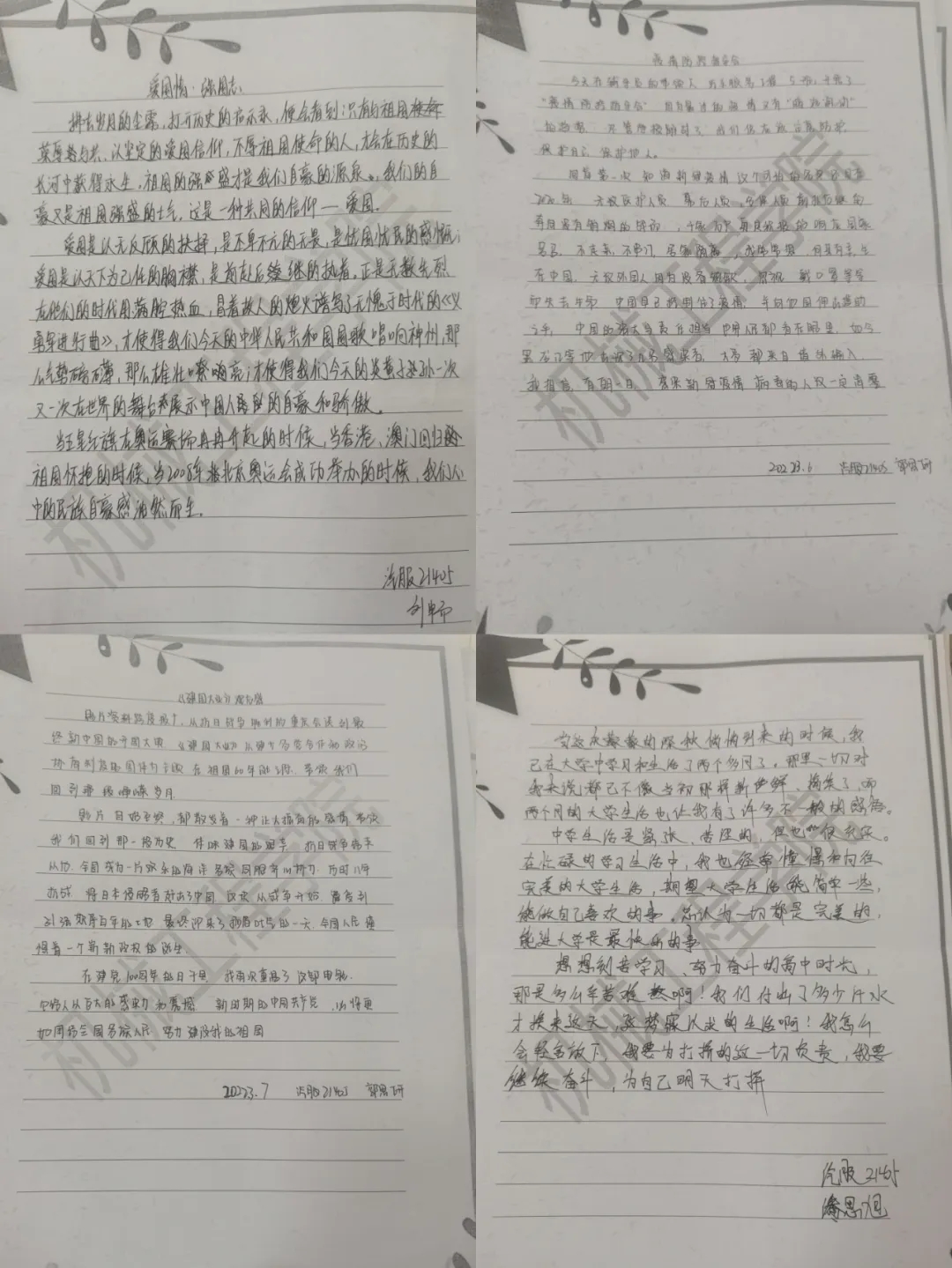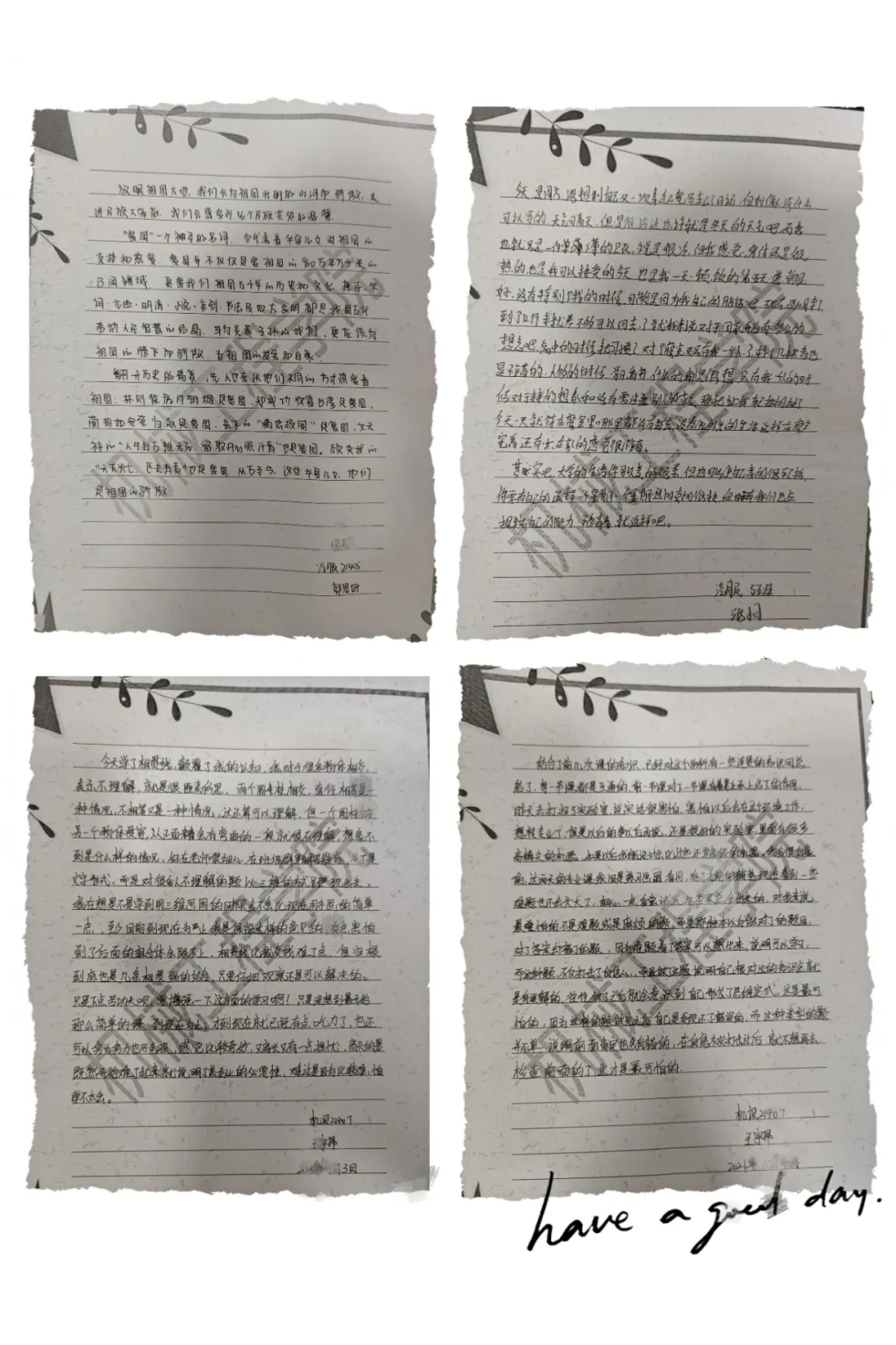 骐骥一跃,不能十步;驽马十驾,功在不舍。我们做事情贵在持之以恒,记日记小组成员就很好地养成了这种习惯。记日记不仅有利于提高表达能力,还能记录生活,这样语言才具有生命力。同学们在日记中不仅记录了生活中有意义的事情还记录了自己上网课时的所学所感,在日记中总结自己的收获,不断积累知识和技巧,明白了当代青年应有的爱国情怀和思想高度。还有的同学在日记中写出了全民抗疫的决心和对祖国美好的祝愿!