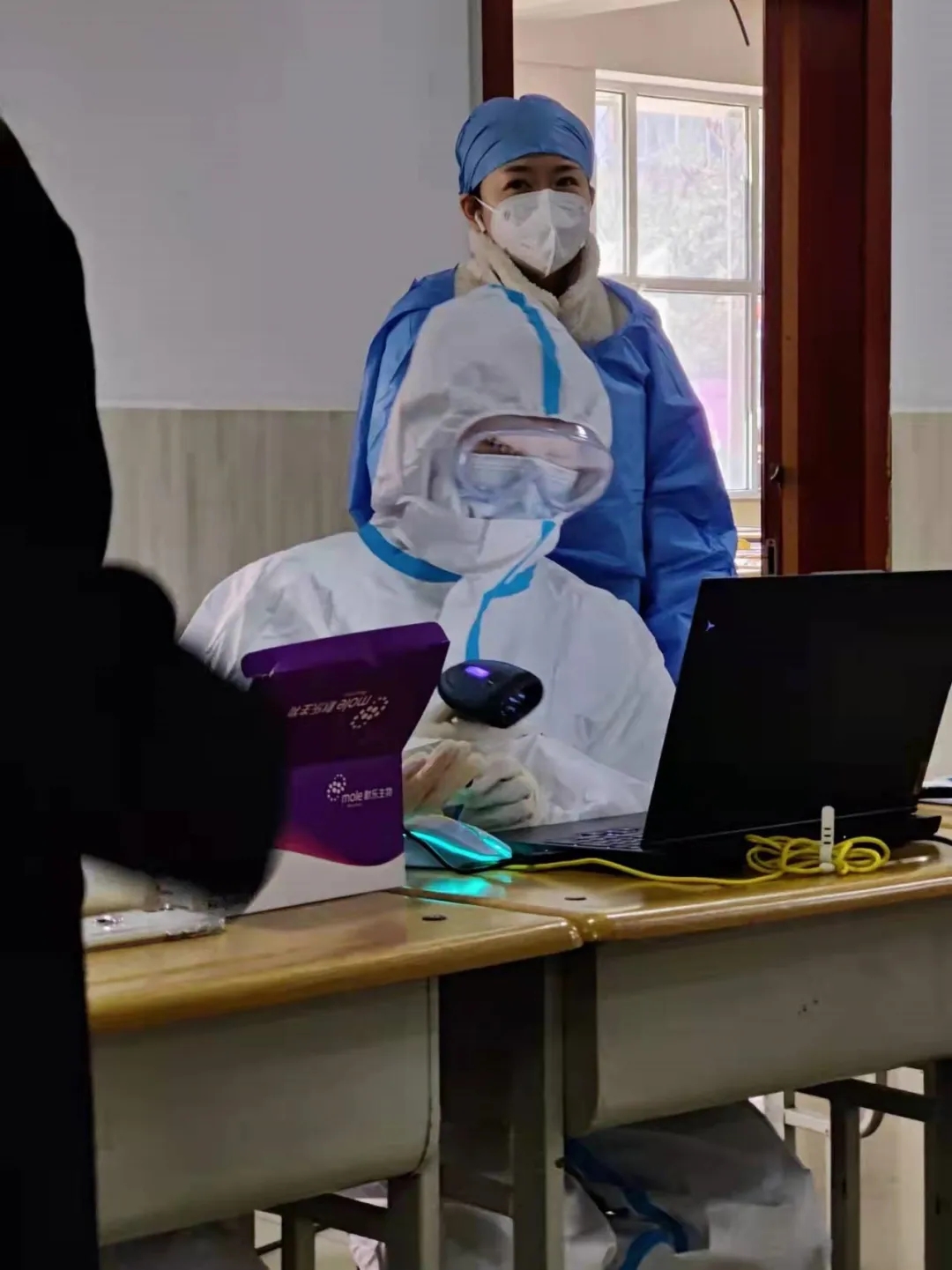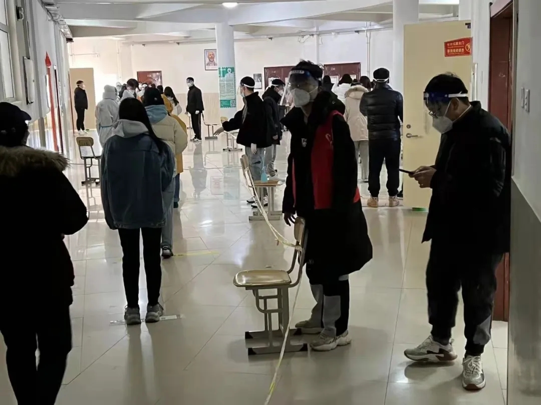 尽心尽力投入其中,确保各项工作毫无纰漏。从布置校内核酸检测场地,到维护核酸现场秩序,为同学测量体温,检查健康码,确保检测过程井然有序,凡事他亲力亲为,用汗水彰显责任。在做好本职工作之外,他还积极帮助其他志愿者完成工作。虽然当前疫情形势严峻复杂,但有他这样积极参与疫情防控的员工志愿者的责任担当,更有每一名同学的积极配合,大家共同与时间赛跑、为生命护航,筑牢校园安全屏障。