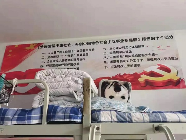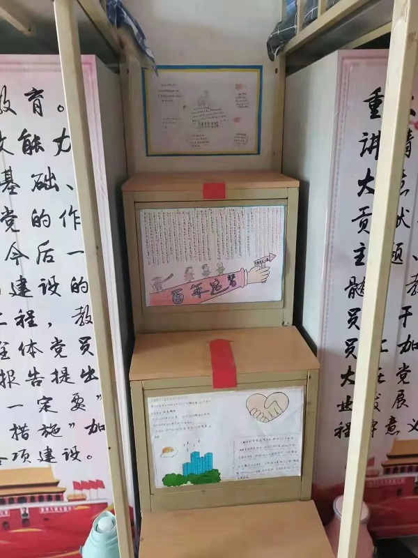 2021年是中国共产党成立100周年,为庆祝建党100周年,讴歌中华民族实现伟大复兴的百年奋斗历程,颂扬中国共产党的丰功伟绩,唱响共产党好、社会主义好、改革开放好、伟大祖国好的主旋律,公司精心策划以“党建进宿舍,全员学党史”为主题开展了寝室建设活动。导员于今天中午十二点半检查了每个寝室的建设情况。