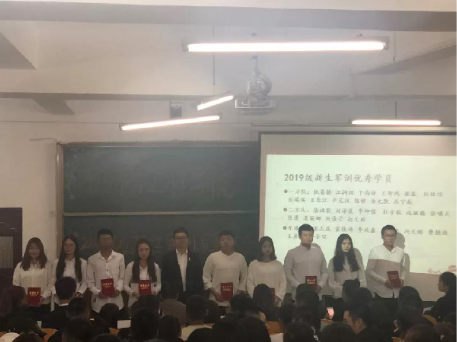 2019年9月27日晚6:00,公司举办了军训表彰大会,参加此次会议的有党总支副书记王凯老师,团总支书记姜奉奇老师,主席团全体成员,以及全体大一新生,本次会议由马晓茹主持。