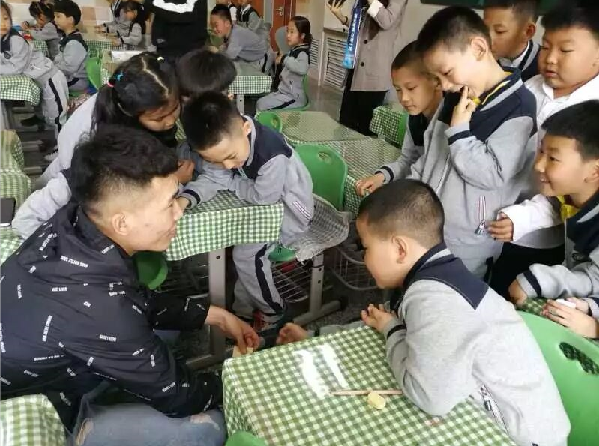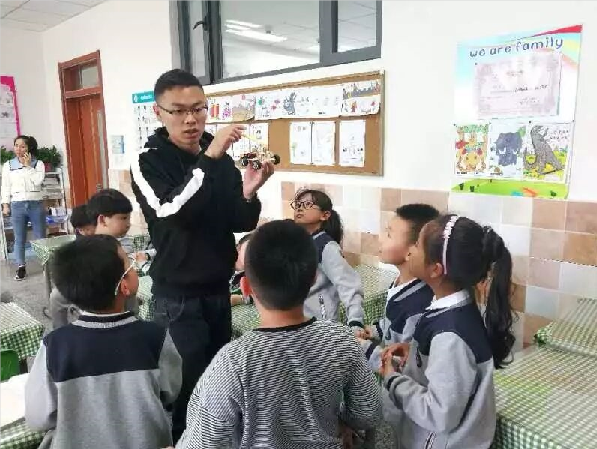 首先,志愿者们带着公司员工自己动手制作的科技小发明发放到班级进行展览。接着由社团联合会主席王磊对这些小发明进行讲解,内容包括小发明的制作材料、制作过程以及用途,让同学们体会到机械力量的魅力。互动过程中,同学们积极踊跃,形成了良好的学习氛围。最后,全体人员合影留念,在欢愉的气氛中结束此次活动。