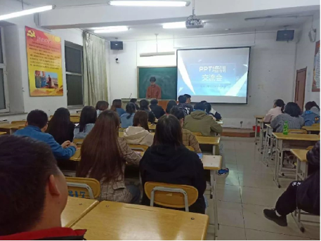 首先,王明昊通过简洁明了的ppt向大家展示了制作ppt的基本内容,并对其进行了分类。接着王明昊对在日常学习中常用的类型展开了讲解。通过基本操作、图形绘制等方面进行了教学演示。最后同学们根据讲解内容对学长提出了制作ppt时间及如何添加视频等问题,王明昊一一耐心解答。