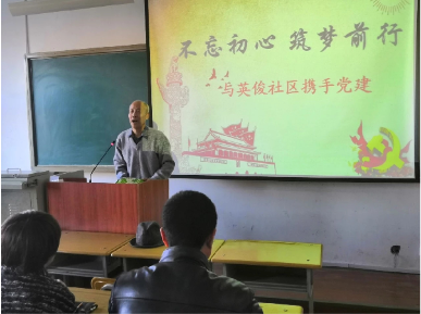 首先,由党总支副书记张烨介绍此次“不忘初心,筑梦前行”活动的内容,并邀请英俊社区陈广有同志进行讲话。