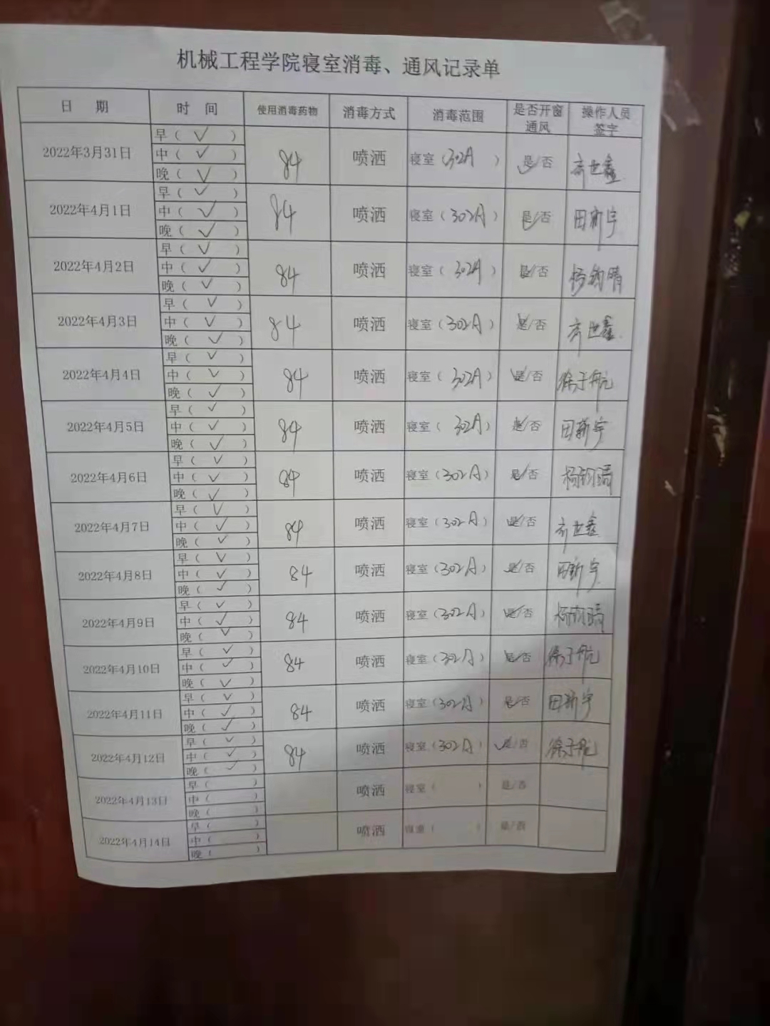 面对此次疫情,当代青年没有理由退缩,没有理由懈怠。时刻牢记自己的使命,在公司需要的时候积极报名加入志愿者行列,为公司和同学们服务。为落实疫情防范常态化的政策,保障员工的身体健康,宿舍测温志愿者每日晚间坚持去每个寝室严格进行体温监测、消毒,对于体温异常的员工及时上报,并提醒员工出入宿舍佩戴口罩。本着为自己、为他人安全着想,严格遵守各项工作要求,帮助老师做好与员工间的沟通,帮助同学解决隔离期间的各项问题,关注同学们的思想变化,送物资、站岗,配合组织做核酸、维持秩序每一项工作都至关重要,同时也更加坚定了同学们抗疫胜利的信念。