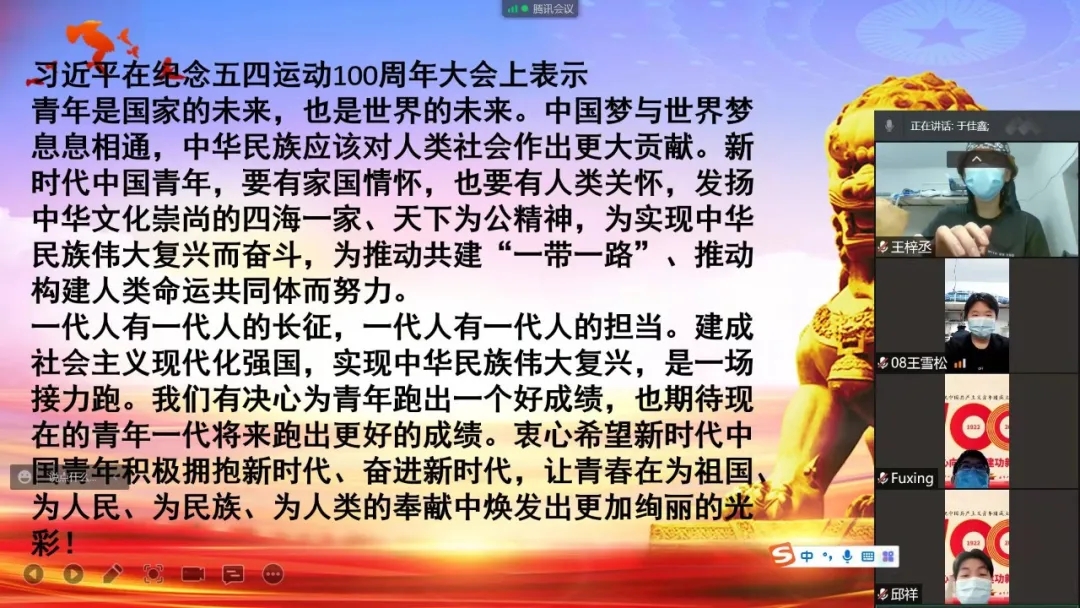 为进一步激励引领广大青年团员大力弘扬以爱国主义为核心的“五四”精神,xcsports于2022年5月4日召开以“传承五四精神,守好青春阵地”为主题的五四专题学习交流会,xcsports全体员工参加。