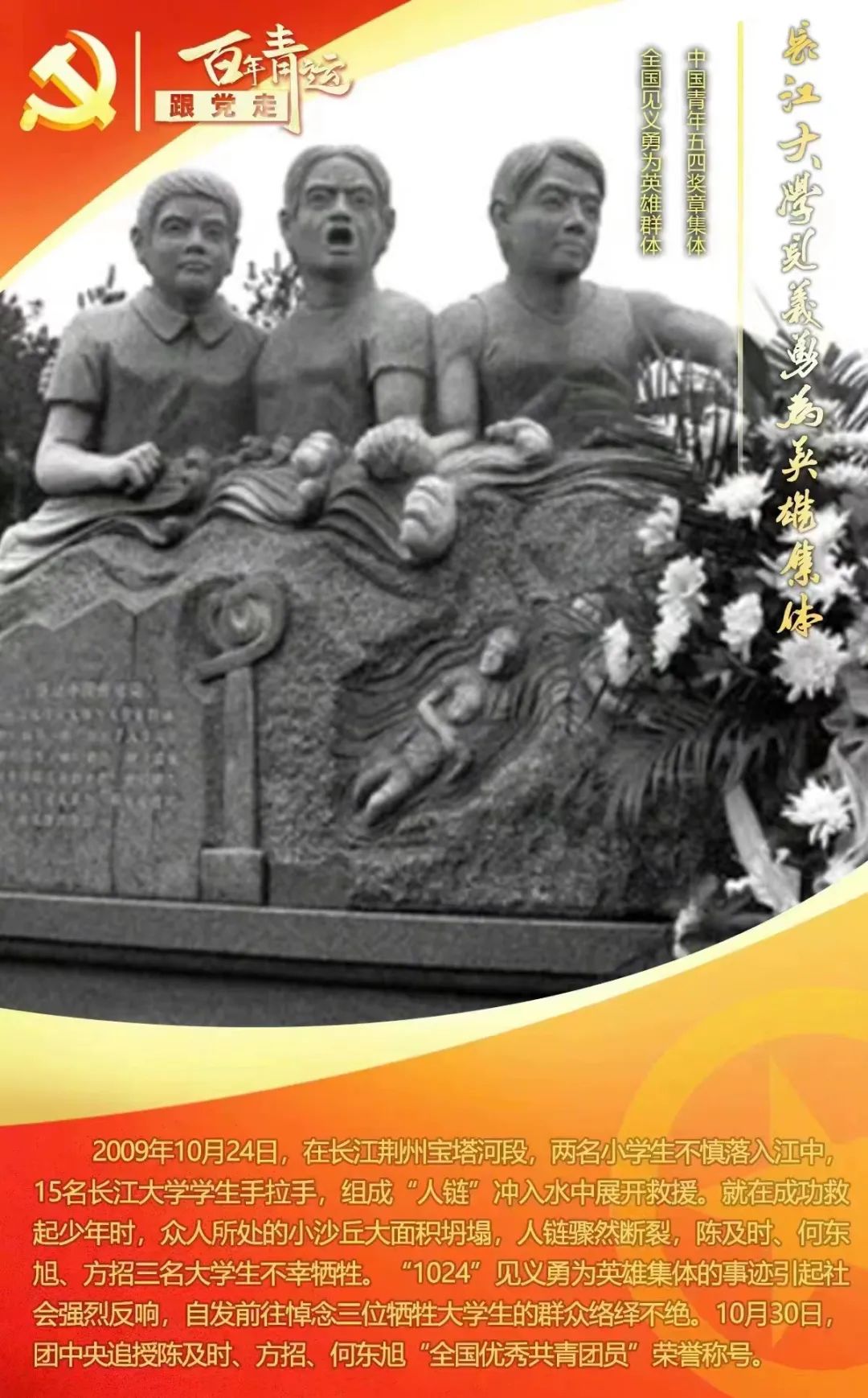 2009年10日24日,在长江荆州宝塔河段,两名小员工不慎落入江中,有三名老员工在救援中不幸牺牲。10月30日,团中央追授陈及时、方招、何东旭“全国优秀共青团员”荣誉称号。1982年,清华大学举办了“挑战杯”员工科学技术作品竞赛活动,1999年,由共青团中央、中国科协、全国学联主办,清华大学承办的首届“挑战杯”中国老员工创业计划竞赛成功举办。