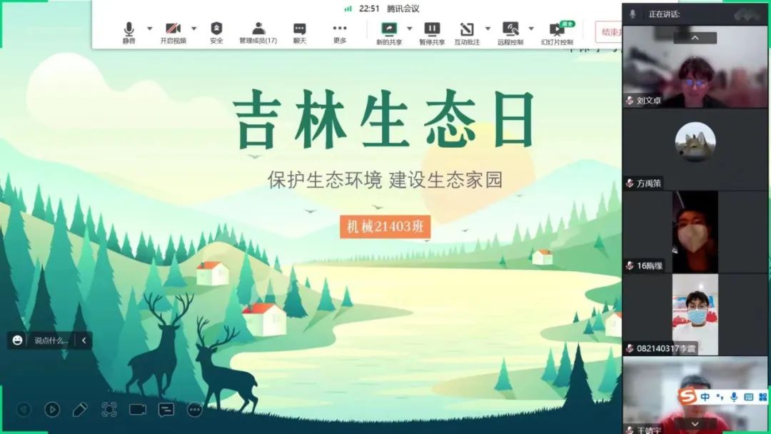 为了深入贯彻习近平生态文明思想和习近平总书记视察吉林重要讲话指示精神。xcsports于10月1日举办以“吹响绿色号角,奏响生态强音”为主题的吉林生态日团日活动,各班团支书主讲。