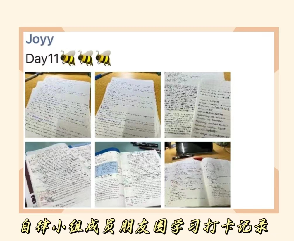 自律不是一种行为规范,自律这个习惯也不是一天就能养成的。它需要你每天都要静下心去做,养成不在一朝一夕,需要时时刻刻将自律放在自己的心中。小组成员在未来也会坚持在每一阶段的自律目标完成后再制定下一阶段的目标,让同学们展示自己这一阶段自律的成果,这一阶段是对同学们自律的肯定,也是对一些同学的勉励,这也是成长路上一个好的经历,这也会为同学们以后的路打下一个基础,做一个好的铺垫。刘楠同学表示:“自律是一种自我收获,也会让自己的日常生活更充实,希望在接下来的日子里,可以更好的去诠释自律的真正意义。”