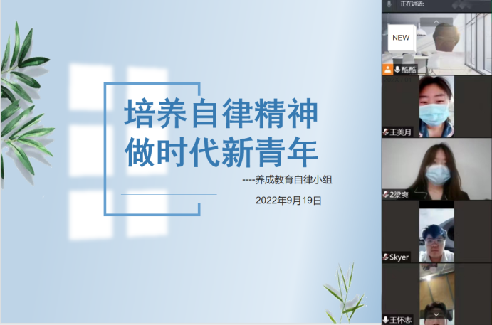 自律的前期是兴奋的,中期是痛苦的,后期是享受的。xcsports养成自律小组全体成员于2022年9月19日开展线上以“培养自律精神,做时代新青年”为主题的自律成果阶段性交流会。