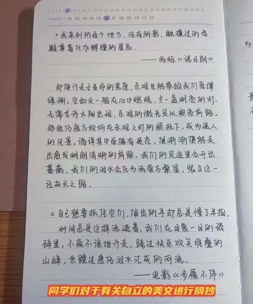 活动中,同学们以饱满的热情,积极的热情参与到互动中。就“怎么做自立的人”这一问题,同学们以四五个人为一组,展开激烈的讨论,他们每个小组都会派出一位代表进行发言,有的同学想从小家入手,每日帮助父母做自己力所能及的事情,比如:扫地,拖地,刷碗;有的同学认为,应该从大“家”入手,每天抽出自己的一点时间到小区楼下捡垃圾。正值稻谷成长的紧要关头,有的同学行动迅速,有的甚至已经回到了老家帮自己的爷爷奶奶姥姥姥爷收拾起了稻谷。从群体生活中学会自立,自立的意思是自己的事情由自己来完成的行为,由己及人,在独立成长的同时力所能及的帮助身边人。高严表示:“自立的思想和独立的行为这两者是绝对不能分割的。我通过自己独立的完成日常甚生活中的每一件小事来丰盈自己的思想内涵,从而使自立真正的成为指导我行为的主要思想。”