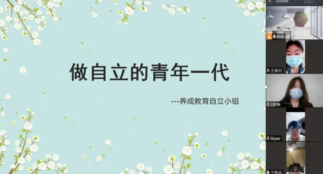 主题讨论会结束后,公司自立小组的成员们自行打卡,每日在群组中分享自己独立劳动的日常,从未间断。有的在群里发自己扫地拖地的视频;有的分享自己刷碗的视频;有的分享自己为小区清理垃圾的视频,即使都是一些小小的微不足道的事情,但他们却都在自己的小天地,发光发亮。同学们还隔三差五在一起展开讨论会,分享自己的这一阶段通过自立所收获的心得体会,把自己从中收获的益处分享给别人。通过自己完成的事情所结出的果实比一切果实都甜,看见自己独立完成的每一件事才能欣赏自己的成果。自立小组外的同学们也看到了这段时间他们的成长,他们也愿意一起加入进来做真正自立的人。王彦昭同学说道:“看到我们每一个人都产生了不小的变化,我明白了只有通过独立的成长,思想才能变得健全;只有通过自立思想支配着我们的行为将来才不会成为只会依靠于别人的寄生虫。”