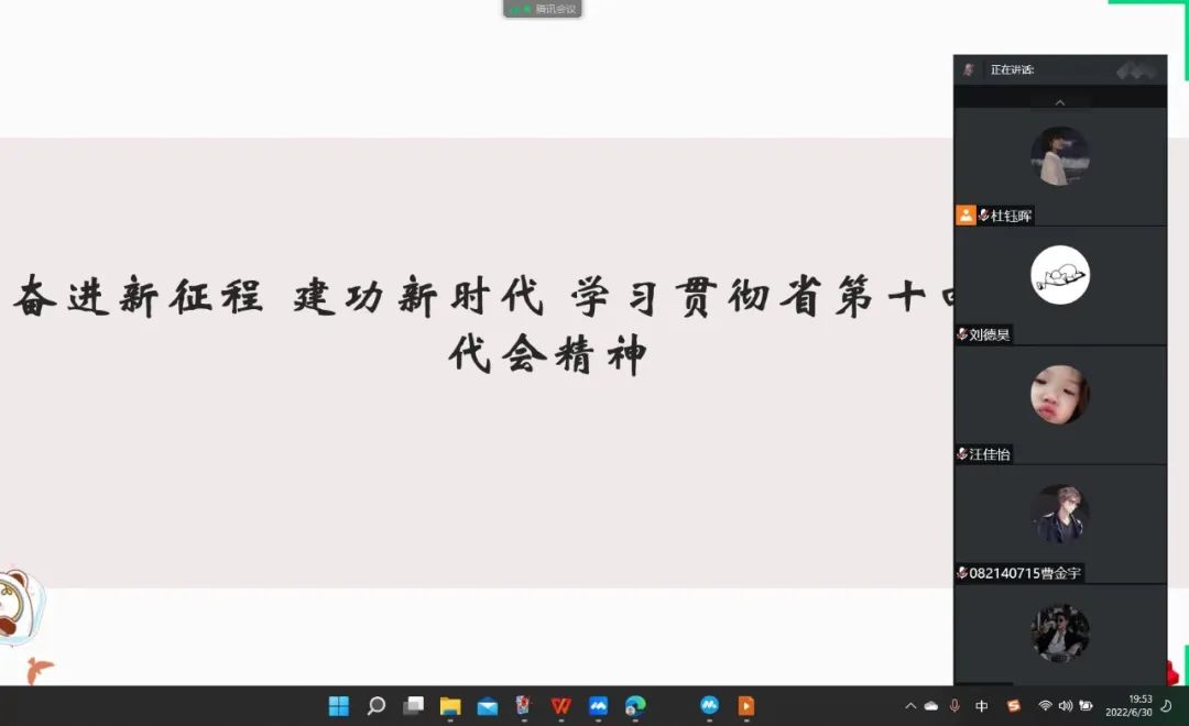 为深入学习贯彻省第十四次党代会精神,迅速把思想和行动统一到大会作出的安排部署上来。机设21407班学习小组于2022年7月6日组织同学们在线上开展“学习贯彻省第十四次党代会精神”主题教育活动。