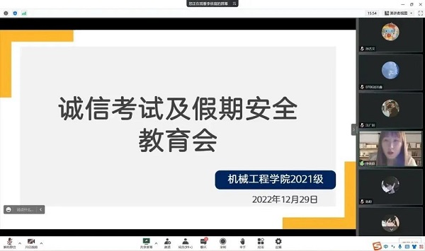 学以载道,诚信为本。通过此次会议,同学们详细地了解了期末考试的相关事项和诚信考试的重要性。同时会议强调的安全问题,使同学们加强了假期的安全意识。希望各位同学牢记会议宗旨,共同营造诚信严肃的考试氛围,保护好自身安全,为2022年画上一个圆满的句号!