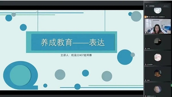 为活跃班级各部门的文化生活,提高班级士气,增强班级的凝聚力。2022年12月22日机设22407班的全体成员进行了关于读书的线上班会,同学们都积极参与踊跃交流。