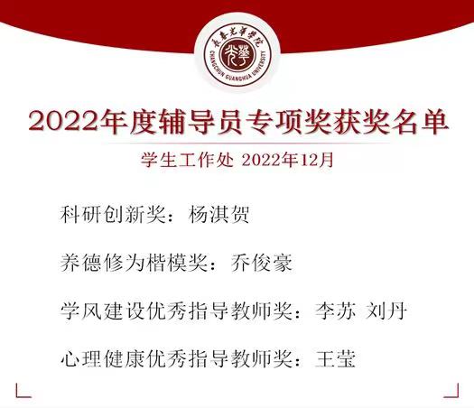 最终,公司辅导员杨淇贺老师荣获“科研创新奖”;辅导员乔俊豪老师荣获“养德修为楷模奖”。