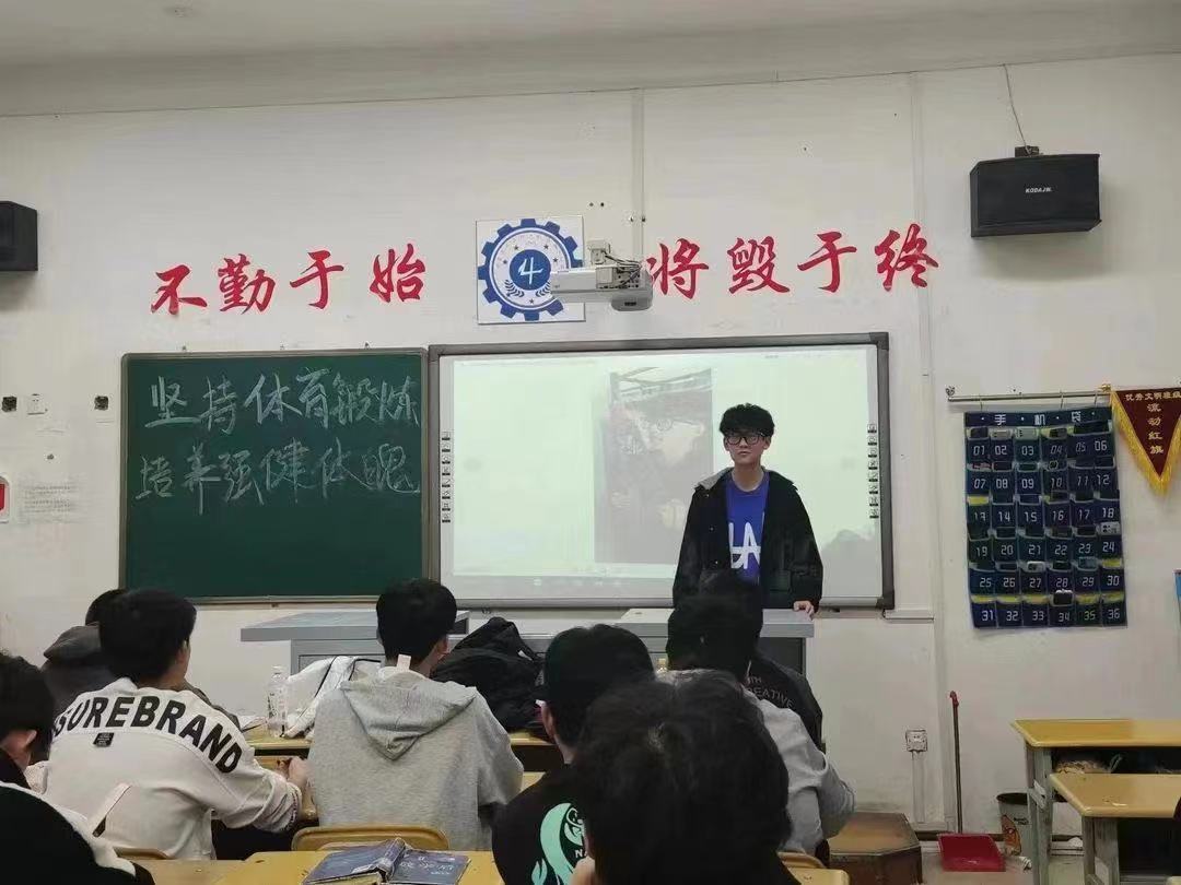 活动开始,班长王鲲鹏同学讲述了体育锻炼对于个人身心发展的重要性,强调体育运动对我们心理健康有着积极的作用。同学们把照片作为记录生活的平台,也用拍照的方式监督和提醒自己要努力坚持下去,大家还在班会活动中晒出了自己锻炼身体时记录的照片。一张张努力且坚持的面孔在大屏幕上浮现,更加激励着同学们坚持下去的决心。活动最后,班长王鲲鹏同学带领大家以体育锻炼为主题开展“谁是卧底”小游戏活动,输的人做相应数目的体育运动,这种小游戏有效的加深了 同学们坚持体育锻炼,培养强健体魄的兴趣。参加活动的李皓楠同学总结到:“体育运动好处虽多,但长期坚持体育运动也并非易事,那么对于坚持下来的人来说,体育运动带给他们的不仅是身体方面的好处,更多的是精神方面的提升。”
