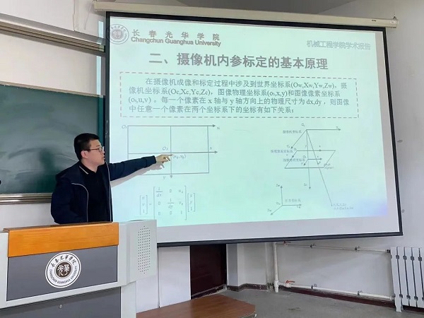 本次讲座共分以下几个部分:机器视觉测量标定概述,摄像机内、外参标定基本原理,常用的内、外参标定方法。首先,苗博士介绍了摄像机的标定技术是进行机器视觉测量的基础工作。摄像机的标定主要利用成像模型来完成。紧接着,苗博士阐述了摄像机内、外参标定的基本原理,这一介绍极大的拓宽了同学们的认知视野。最后,内、外参标定方法的讲解将讲座氛围推向了高潮。至此,本次讲座落下了帷幕。