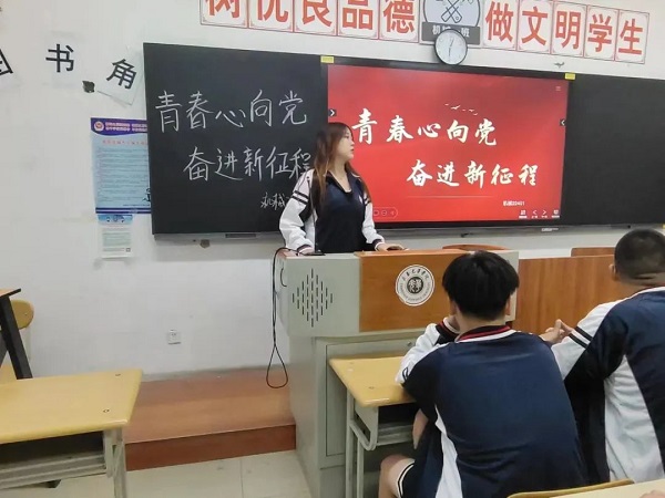 活动伊始,团支书强调:面对全面建设社会主义现代化国家新目标,时代呼唤青春向党,发展需要奋斗向前。我们要树立目标,坚守信念,永不放弃,从现在开始,一步步朝目标前进。随后讲到,青年向党,就应立大志、勇担当、勤奋斗、长才干,国家就有希望、有发展、有未来。活动最后,团支书再一次点明:青春向党,就是要把艰苦奋斗的优良传统传承好、发扬好,在奋斗的脚步中,见精神、见成绩,用青春和汗水书写党和国家事业发展的新篇章。
