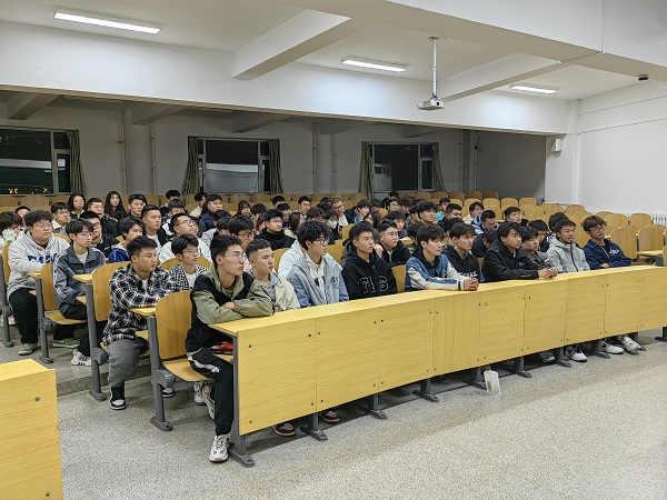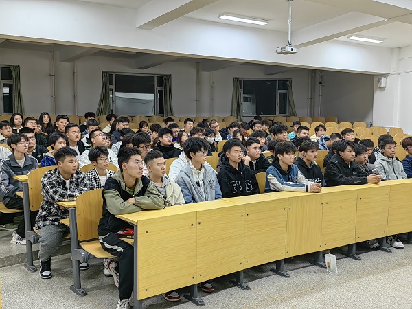 活动开始,机械工程专业的韩刚学长畅谈学习心得,分享个人成长经验,积极发挥公司员工代表的模范先锋作用,为2023级新生提供入学指引。韩刚学长结合自身获得2022-2023学年国家奖学金的经历,兼其他丰富的社会实践经验,分享了在校经历对个人成长的重要性。“拥抱变化,迎接挑战,享受成长”,大学是挑战与机遇并存的舞台。他鼓励大家以高标准、高目标要求自己,要善于思考,勇于创新,不断拓展自己的视野和思维方式,积极参与社团活动、实践项目,锻炼自己的实践能力。最后,韩刚学长强调:“回首过去,展望未来,不论何时,阶级上升的通道都是开放的,奋斗依旧是最有意义的答案。关关难过关关过,前路漫漫亦灿灿,无论是个人生活还是社会环境,都在不断发生着变化。生活中有许多阶段和转折点,每个转折都意味着改变和挑战。在接下来的日子里,我们将携手起航、无畏前行。 ”