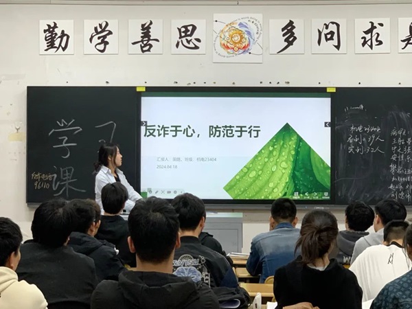 随着信息技术的迅猛发展,电信网络诈骗手段日益翻新,同学们的财产安全遭受严重威胁。本次活动旨在引导同学们主动学习反诈知识,提升自我保护能力,在日常生活中,要时刻保持警惕,遇到可疑电话、短信或网络信息时,务必保持冷静,不轻易相信陌生人的话语,及时核实信息真伪。同时,也要关注官方发布的反诈宣传信息,了解最新的诈骗手法和防范方法,做到心中有数、防范有术。活动中,团支书通过播放PPT着重讲解了防范电信诈骗典型手法以及应对措施,深入浅出地剖析了诈骗行为的本质和危害。也向同学们明确,作为当代老员工,更要积极参与反诈宣传工作,遇到可疑情况,要及时向有关部门检举,协助配合开展反电信网络诈骗工作,还可以通过学习法律知识、参加反诈宣传活动等方式,增强自身防范能力,共同营造一个安全、和谐的社会环境。