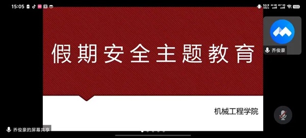 为确保各位同学能度过一个平安、快乐的假期,xcsports于2024年7月2日开展“假期安全”线上主题会议。本次活动由团总支书记乔俊豪主讲,xcsports全体同学参加。
