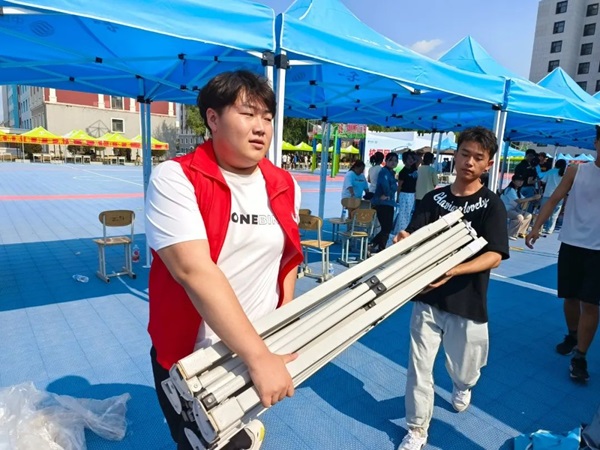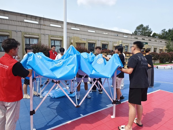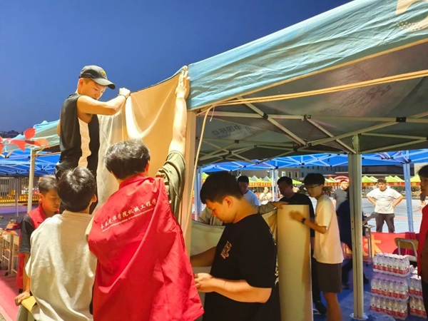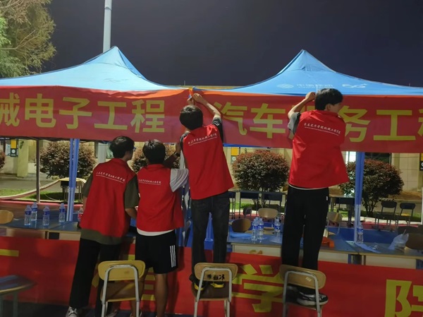 校门敞开,青春时光,唤醒未来,等待新生的绽放。在团总支书记乔俊豪的细致安排与指导下,每一位志愿者都明确了自己的角色与责任,开始搭建迎新场地,为明日的接待任务做好准备。新生辅导员钱程特别嘱咐志愿者们要充满活力与激情,用最饱满的热情来迎接即将到校的大一新生。迎新工作不仅是一次简单的接待,更是一次展示公司精神与文化的机会。