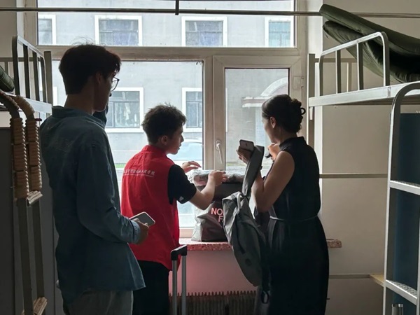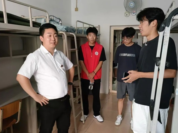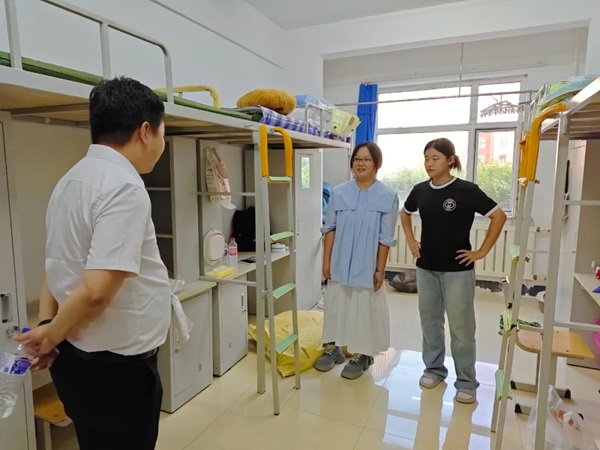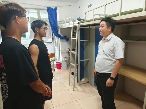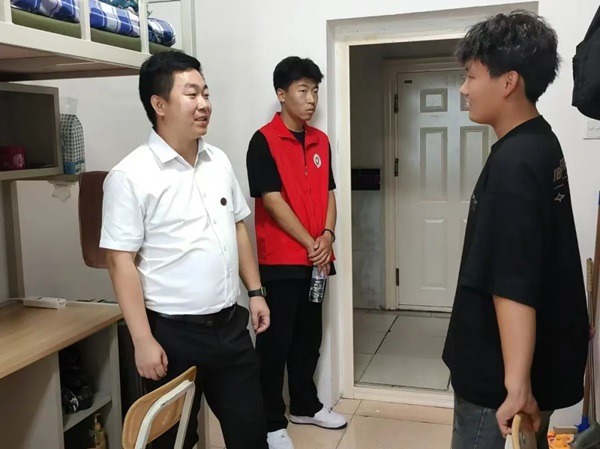 上午迎新结束后,2024级新生辅导员钱程带领部分迎新志愿者对每一个新生的寝室进行走访。走访期间,钱程老师与大一新生们一一交谈,就寝室问题、身份转换等方面进行深入了解。他为大一的同学们逐一解决寝室问题,并叮嘱员工们要积极调整状态尽快的适应老员工活,室友之间要互帮互助、学会接纳与包容,营造健康向上的寝室氛围。他希望同学们以梦为马,不负韶华,共向理想前进。辅导员老师的一句句暖心问候,温暖了每一位学子的心,也让他们更加坚定了迎接挑战的决心。