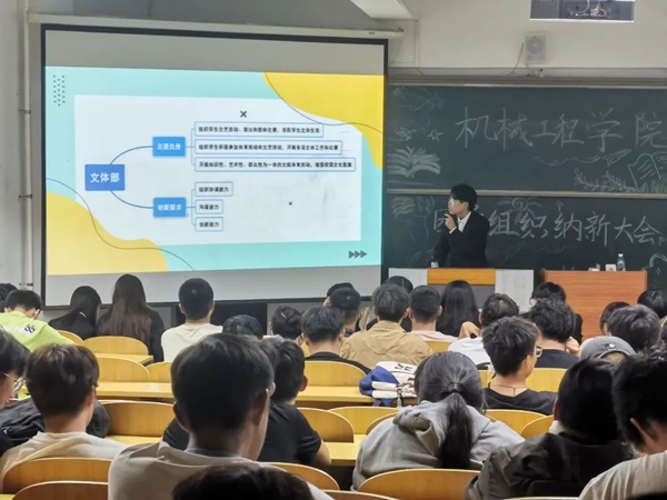 为进一步加强团学组织队伍建设,全面促进队伍发展,充分发挥员工的主体作用,高效开展团学组织的各项工作,xcsports于2024年9月11日分别在二教116和212开展“团学组织纳新宣讲会”。全体2024级机械学子及团学骨干共同参加。