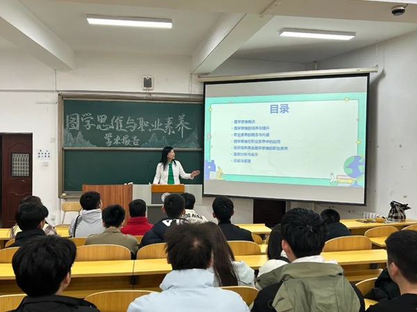 讲座伊始,张学忱教授对图学思维的概念进行详细讲解,指出图学思维是通过图形、图像等工具进行思考和表达的一种思维方式。她强调了将图学思维融入日常学习的重要性,通过这种方式不仅可以加深对专业知识的理解,还能促进批判性思考能力和自主学习能力的发展。她以职业素养的概念和内涵作为切入点,通过运用图学思维,不断提高自身能力,并高质量高效地完成各项任务。同时,她针对同学们的疑惑和兴趣,进行了解答与指导。最后,张教授不仅对本次讲座进行了总结,还对同学们未来的学习方向给出了富有启发性的建议。她鼓励同学们应以开拓进取、积极探索的精神去学习,将理论知识更好地应用于实践。