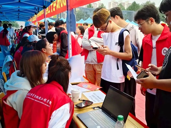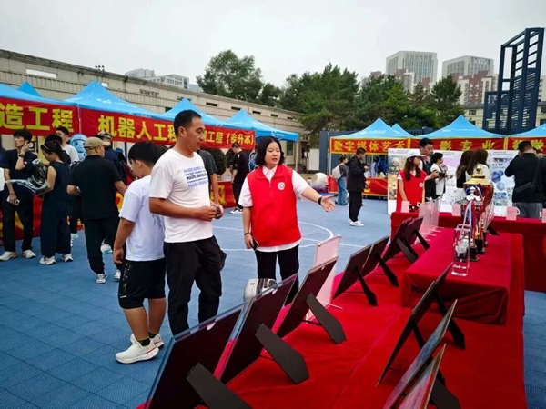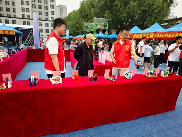 帐篷前机械模型展区吸引众多新生的目光。学长学姐们热心地介绍着各种机械装置的工作原理和应用,从精密的齿轮传动到智能的机械臂操作,他们的眼中充满对专业的热爱和自豪。新同学们听着生动的讲解,观察着眼前科技感十足的模型,眼中的好奇逐渐变为坚定——或许在此时此刻,“机械人”的身份已在他们心中悄然生根,对专业领域的探索和前行目标也变得更加明确。