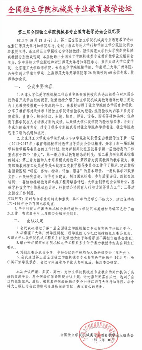 第二届全国独立公司机械类专业公司产品论坛会议纪要