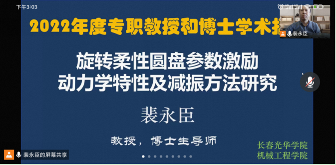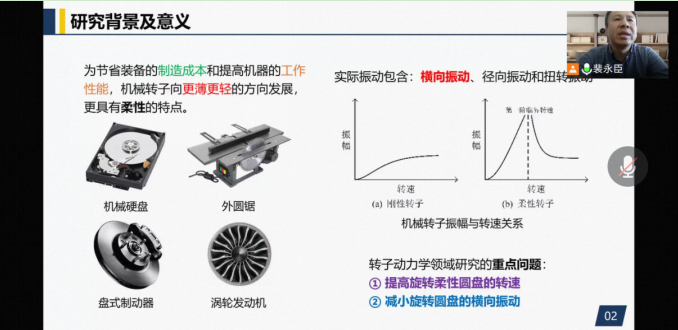 为加强师生之间的学术交流,活跃学术氛围,增强科研实力,9月20日下午,xcsports特聘教授,吉林大学裴永臣教授通过线上直播的形式为本校师生作了一场关于《旋转柔性圆盘参数激励动力学特性及维稳减振方法研究》的学术报告,其中机械公司 7 0名员工认真听取了报告。