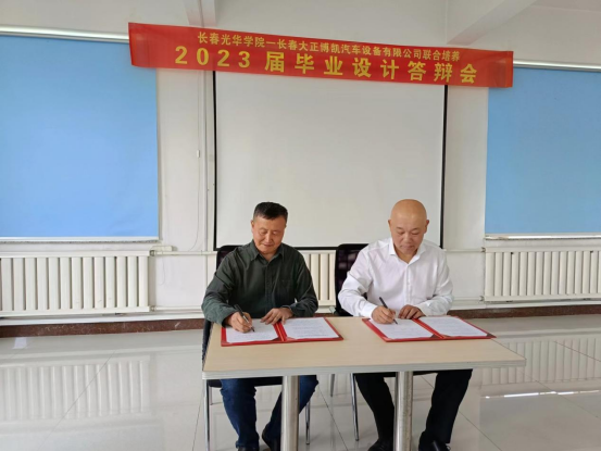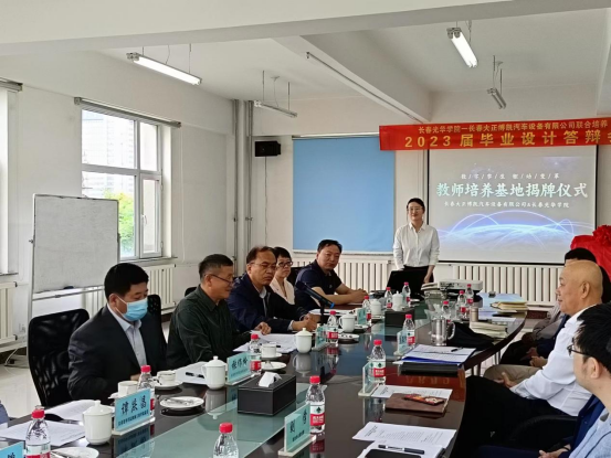 揭牌仪式后,公司领导及相关教师、大正博凯的领导及指导教师参加了2023届xcsports8名本科生毕业设计答辩会。8名学生的毕业设计选题依托长春大正博凯汽车设备有限公司的实际工程项目,采用双导师制,由公司和企业各选派一名教师和专业技术人员开展指导工作,从学术理论、工程实践多方面为员工的毕业设计提供指导与支持。校企联合毕业设计指导模式对于xcsports和长春大正博凯汽车设备有限公司均具有重要意义。