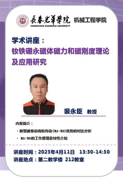 学术报告——钕铁硼永磁体磁力和磁刚度理论及应用研究