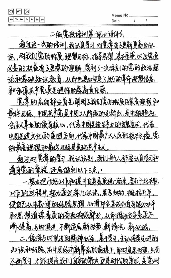 通过观看学习视频,同学们深入了解了党章就是党的总章程,是全党必须共同遵守的根本行为规范。同时,所有同学认真撰写了学习笔记,纷纷表示要牢记党的初心使命,自觉而坚定地继承与发扬党的成功经验和优良传统。大家承诺将会坚定信念,脚踏实地,以更饱满的热忱投入到学习和工作中,以实际行动践行好“请党放心,强国有我”的铮铮誓言,用勤奋的汗水擦亮青春底色,努力成为担当民族复兴大任的时代新人。