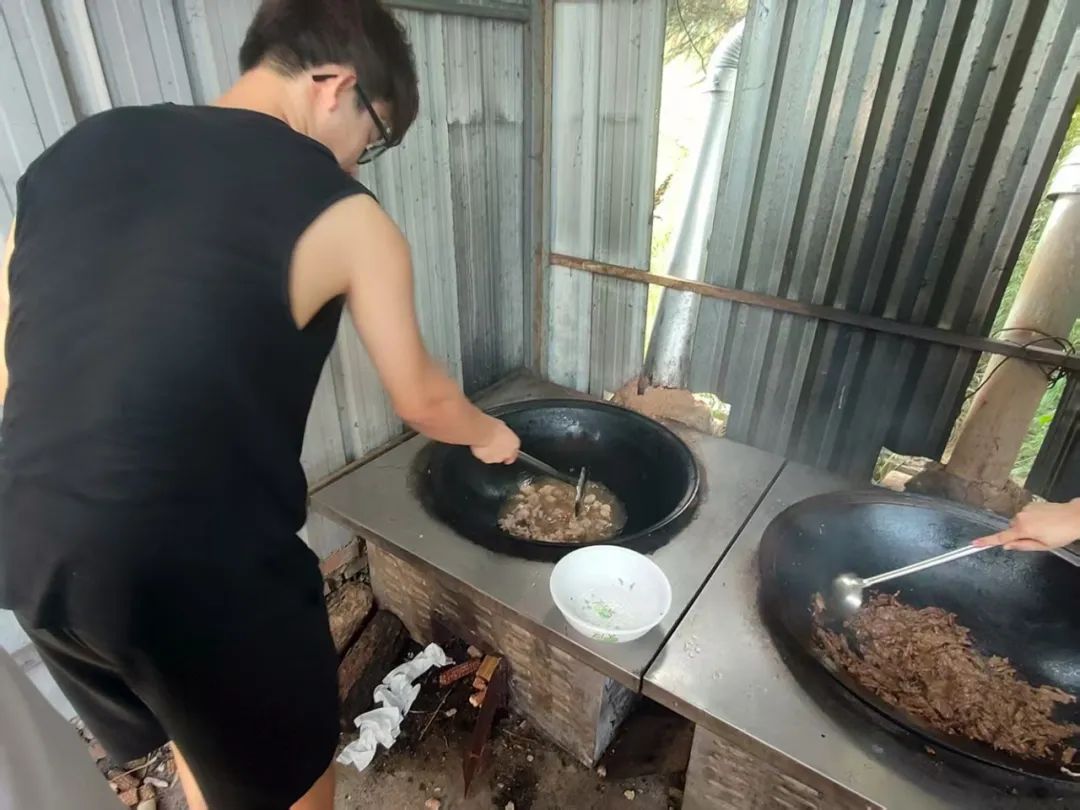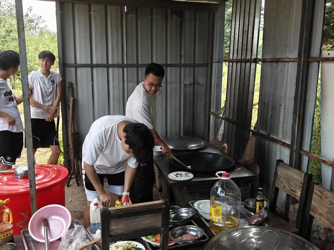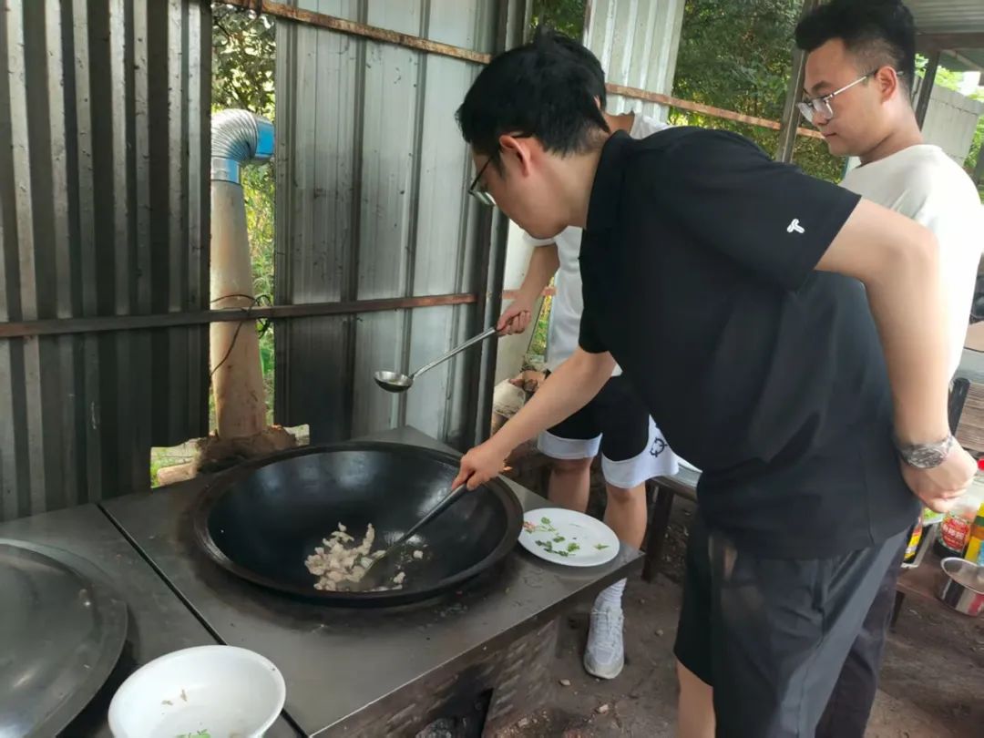 傍晚时分,实践团成员们走进瓜田,藤蔓间挂满了饱满的瓜果,大家小心翼翼地摘下成熟的果实,感受着丰收的喜悦。在农家厨房,团队成员们分成小组,分工合作完成晚饭。
