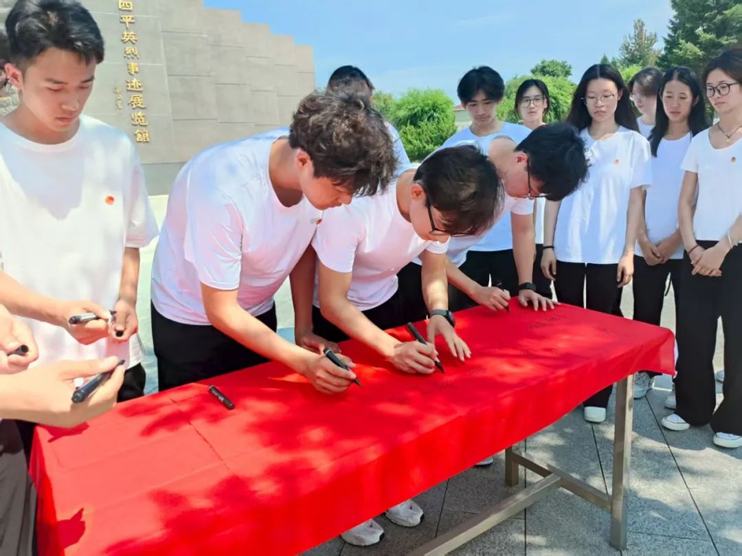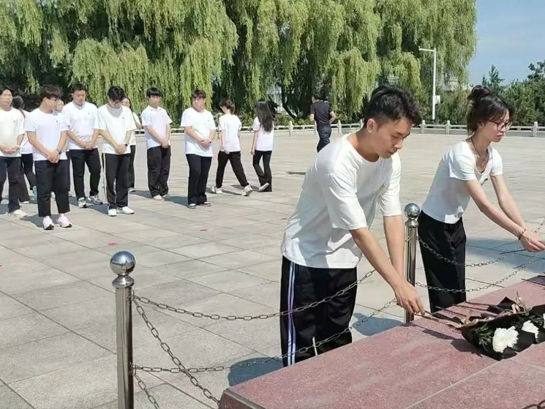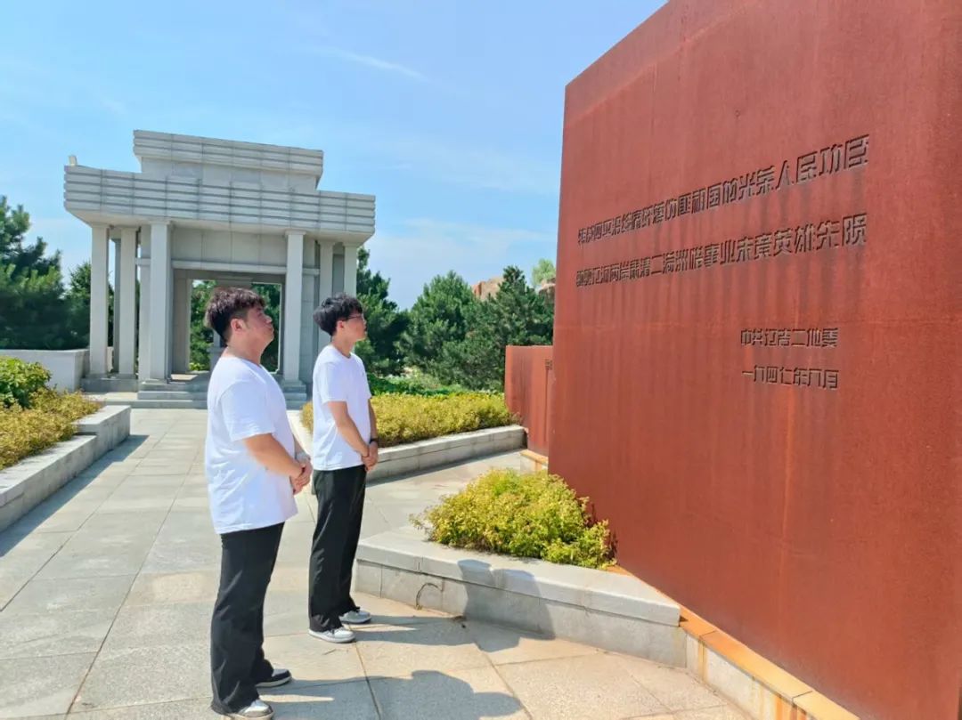 7月10日清晨,四平的晨光掠过烈士陵园的苍松。队员们手捧白菊,在纪念碑前静静伫立,在烈士纪念碑前举行了特殊的 “思想淬炼”。工作人员讲述的 “塔子山战斗中农民冒死为战士送粮” 的故事,与塔子山战斗遗址实地调研中发现的战壕与农田交错地貌相互印证。在四平战役纪念馆内,团队成员近距离接触历史的印记,在沉浸式观看中感受历史的烽烟和传承的使命。
